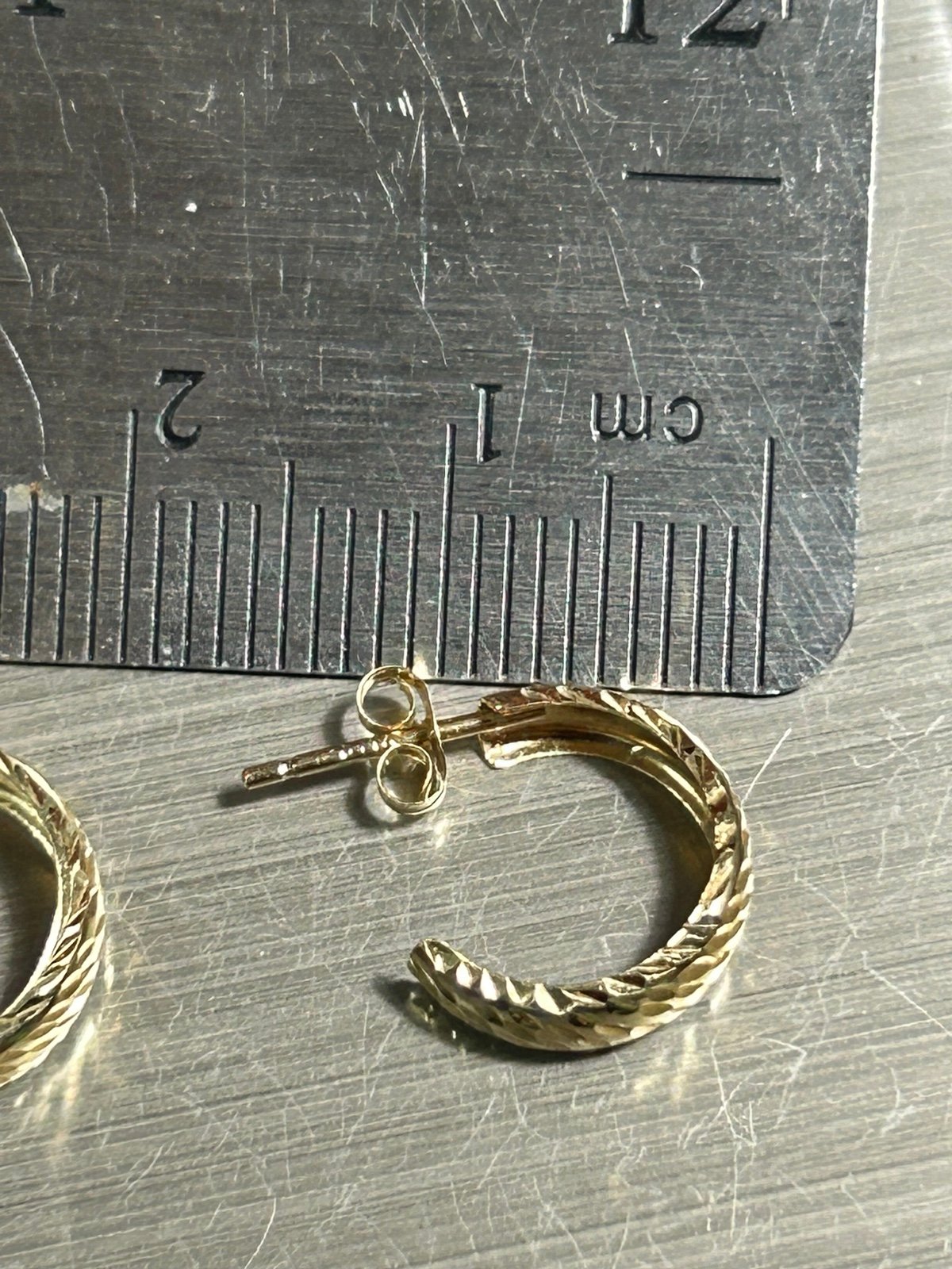 14k solid yellow gold small hook post stud earrings diamond cut textured