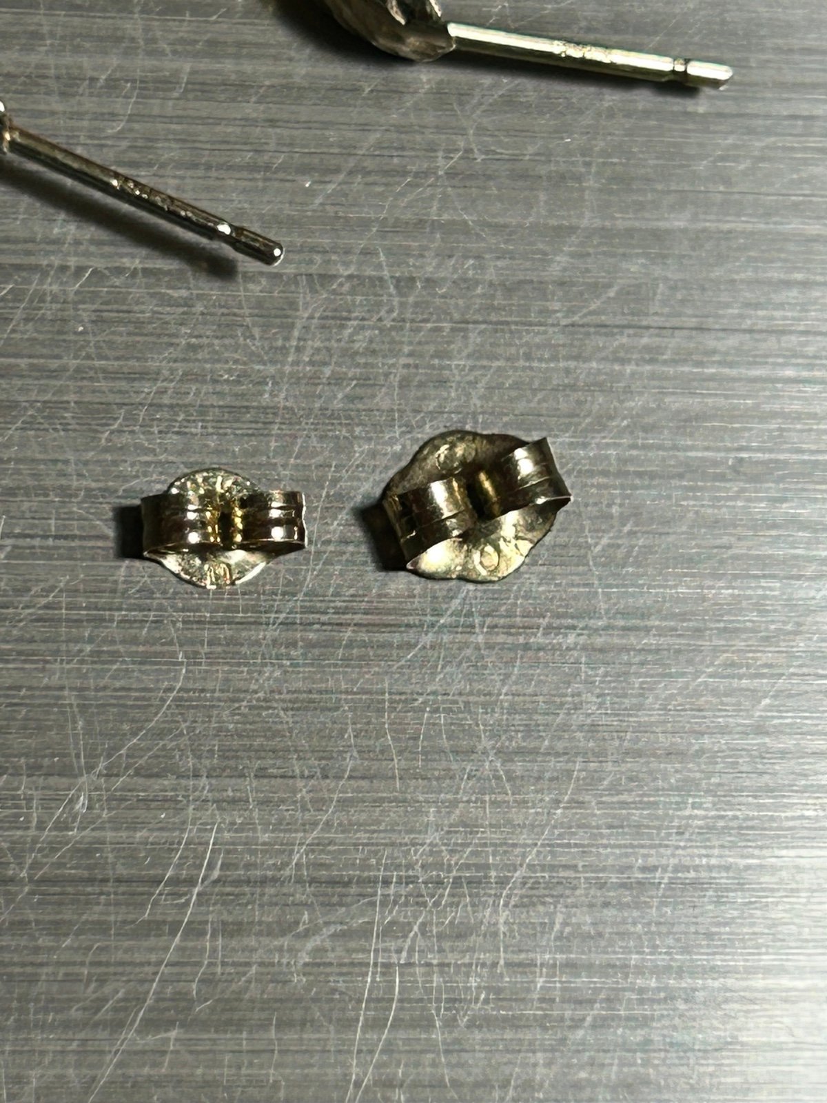 Earrings posts are stamped 14k, backs are unmatched 14k and 10k solid gold, all solid yellow gold, tested,