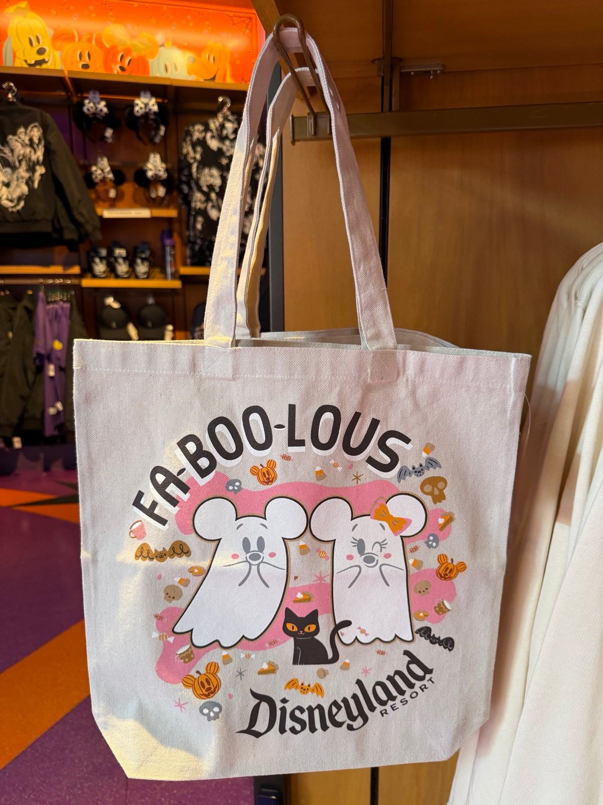 The NWT Disneyland Bag Tote 2025 Halloween Mickey Minnie Cutie Ghost Fa-Boo-Lous Canvas is a limited edition tote bag featuring characters from the Disney franchise. With a spooky Halloween theme, the bag showcases iconic characters like